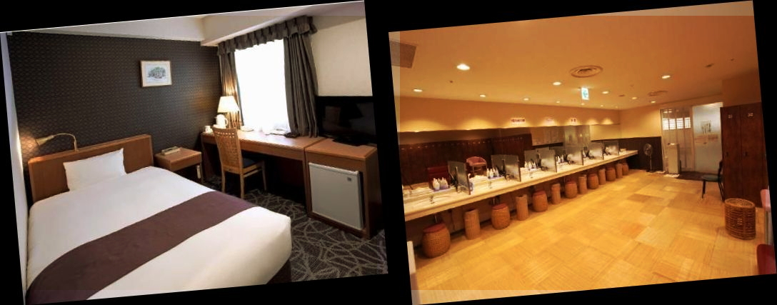 객실은 크기는 작지만 깨끗하고 편안했습니다. 욕조는 없었지만 걱정할 필요가 없었습니다. 왜냐하면 1층에 대욕장이 있었기 때문이죠. 대욕장은 넓고 깨끗했고, 드라이기와 세면도구도 충분하게 갖추고 있었습니다.