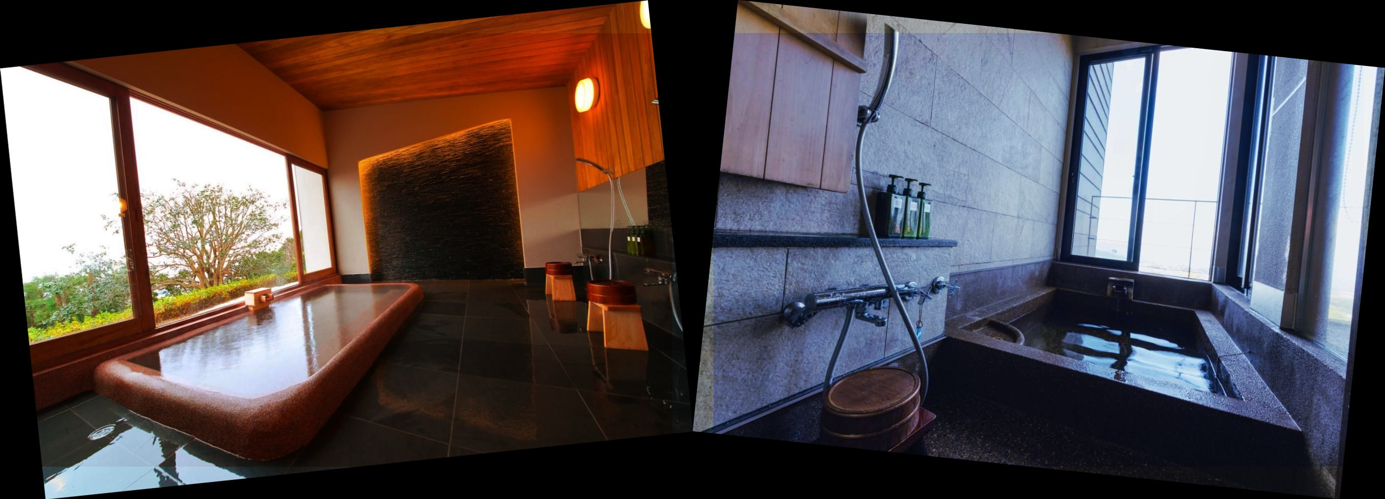 저는 개별적인 반노천 온천탕이 있는 1층 프라이빗 료칸을 예약했는데, 너무 깔끔하고 뷰도 환상적이었습니다. 숙소는 역에서 약간 떨어져 있었지만 택시를 타면 10~15분 정도면 갈 수 있어요.